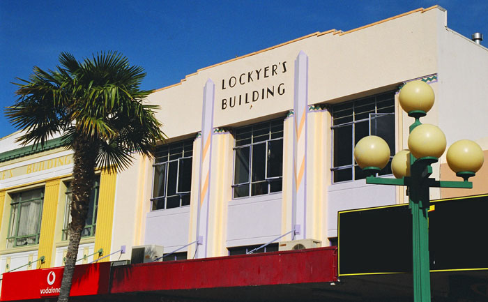 | The Criterion Hotel presents a hybrid of styles, a Spanish Mission Facade, Art Deco shop fronts and verandah. |